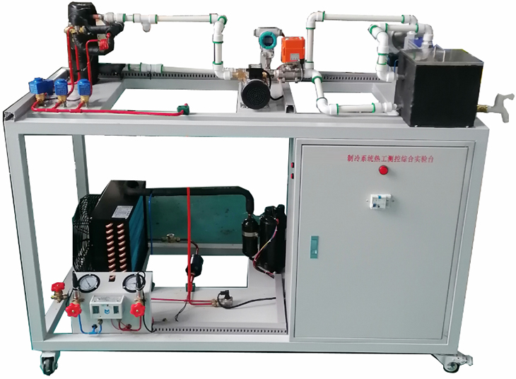 制冷系统热工测控综合实验台采用蒸汽压缩式制冷循环系统,配备全封闭式制冷压缩机、冷凝器、蒸发器等制冷系统真实部件,并设有智能温度调节仪、流量计、压力表、电压表、电流表等测量仪表。不但能开设制冷压缩机性能参数的测定实训,还能进行制冷循环基本原理的演示实训。适用于职业院校制冷专业相关课程的教学实训。