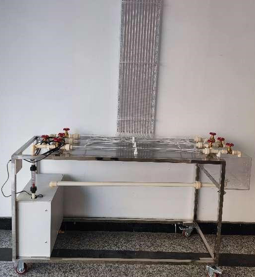 水箱、管道、孔板流量计等均采用透明有机玻璃。台面采用304不锈钢材质,不锈钢框架、配脚轮均为万向轮带禁锢脚。