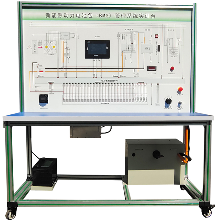 锂电池管理诊断系统实训台,动力电池组及BMS管理系统实训台选用新能源车辆 磷酸铁锂 动力电池包,单体电池(3.2V20AH,共24串),带CAN总线的一体机BMS电池管理系统,有被动均衡功能;真实地呈现了磷酸铁锂动力电池包核心零部件之间的连接控制关系、安装位置和运行参数,以及高压系统安全注意事项,并培养学员对磷酸铁锂动力电池包(BMS)故障分析和处理能力。适用于了解与验证电动汽车的动力电池参数进行实时监控、故障诊断、SOC估算、短路保护、绝缘检测、充放电控制、均衡等功能,并通过CAN总线的方式与带CAN通讯的车载充电机进行信息交互,保障电动汽车高效、可靠、安全运行的BMS教学实训实验。