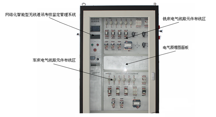 控制柜主体上安装各种机床电气元件操作区、机床电气线路元器件布线区面板、电动机模拟单元。
