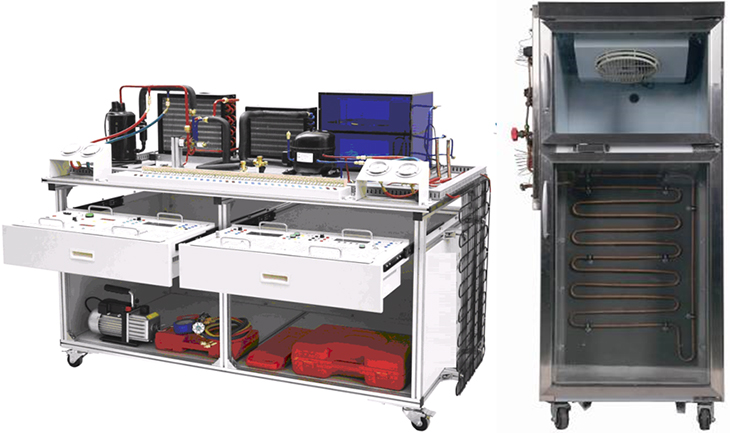 (1)装置采用模块化设计,由导轨式铝合金安装平台、空调系统、电冰箱系统、电气控制系统等组成。