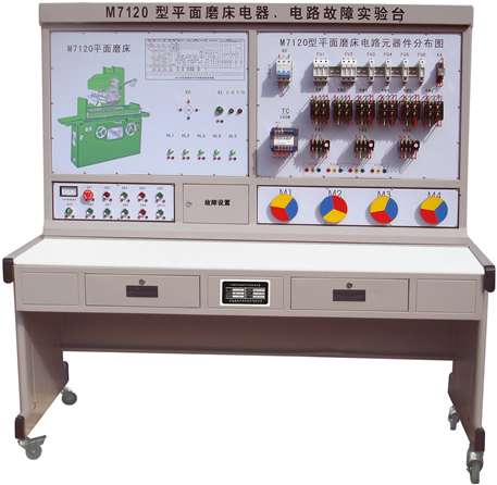 平面磨床电气技能实训考核装置外形为落地单体式结构,采用左右空间布局。右面机床电器及电路图,左面是彩色摇臂才、钻床外形图、相应动作指示灯、启停按钮和线路原理图。机架采用铁质双层亚光密纹喷塑结构。以机床电器实训考核的实际情况而设计的新一代集培训学习、理论验证、实操能力、考核鉴定于一体的多功能设备。该套设备适用于各劳动技校、大中专、职校、培训中心的电工、电拖专业教学实验实训。在每种装置中都装有漏电保护开关,电器元件全部采用实际的机床工业电器,使学生更加容易理解、分析电路结构和原理。