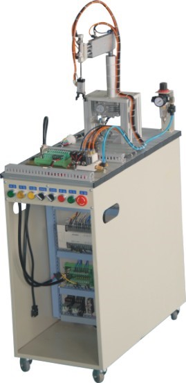 由平移工作台、塔吊臂、机械手、齿轮齿条传动、工业导轨、开关电源、可编程序控制器、按钮、I/O接口板、通讯接口板、电气网孔板、多种类型电磁阀及气缸组成,主要完成将上站工件拿起放入安装平台,将装好工件拿起放下站。