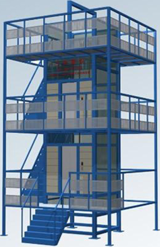 相当于电梯附着的建筑物,提供支承,固定导轨,是钢架结构。观学平台老师和学生站立学习场所。