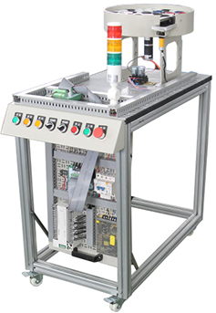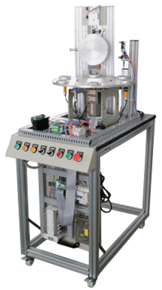 6工位旋转工作台、平面推力轴承、直流减速电机(10W/24V  5r/m)、刀具库(3种刀具)、升降式加工系统、加工组件、检测组件、光电传感器、转台到位传感器、步进电机、步进电机驱动器、电气挂板等组成。主要完成物料加工和深度的检测。工件在旋转平台上被检测及加工。旋转平台由直流电机驱动。平台的定位由继电器回路完成,通过电感式传感器检测平台的位置。工件在平台并行完成检测及钻孔的加工。在进行钻孔加工时,夹紧执行件夹紧工件。加工完的工件,通过电气分支送到下一个工作站。