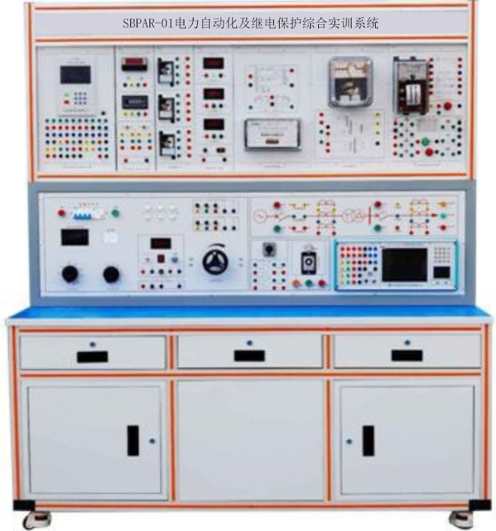 ▲实训控制屏包括:电源控制模块、电力智能管理监测保护系统、一次系统模拟接线图、微机型继电保护测试仪(用户选配)、负载、模拟断路器、各种带灯操作按钮等。