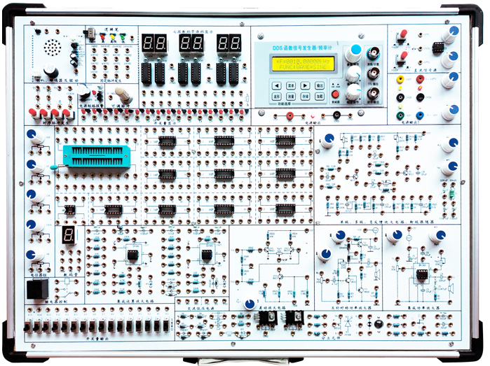 2、实验原理图都印刷在实验板表面,实验电路由学生按照实验原理图进行搭建,既培养了学生的独立思维能力,又培养了学生的动手能力。