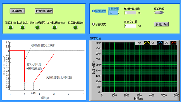 Ø背靠背变流器可实现直流侧电压的初始状态进行设定,实现单位功率因数并网,实现风力发电机在故障条件下不Ø脱网运行,低电压穿越的功能,支持风机的低电压穿越实验;