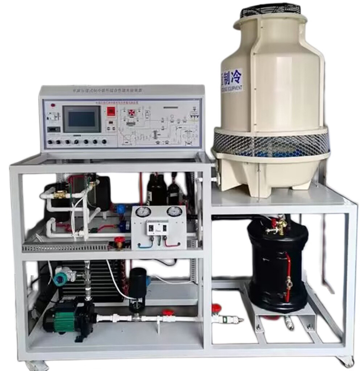 实验台在原来的基础上加装冷却塔,冷却水实现了冷凝水自循环。冷却塔流量:3T,电压220V
