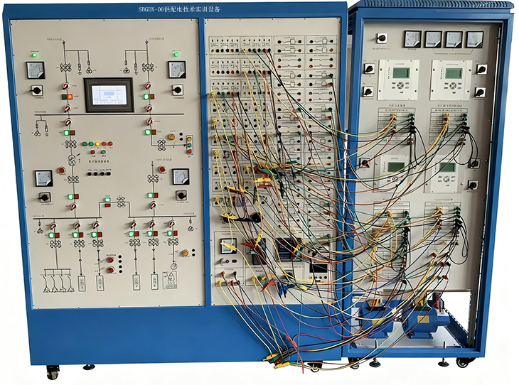 设置一套工厂供配电技术实训装置,模拟35kV总降压变电所、10kV高压变电所及车间用电负荷的供配电线路中涉及的微机继电保护装置、备用电源自动投入装置、马达保护器、智能采集模块以及工业人机界面等电气一次、二次、控制、保护、综合自动化等运行设备。