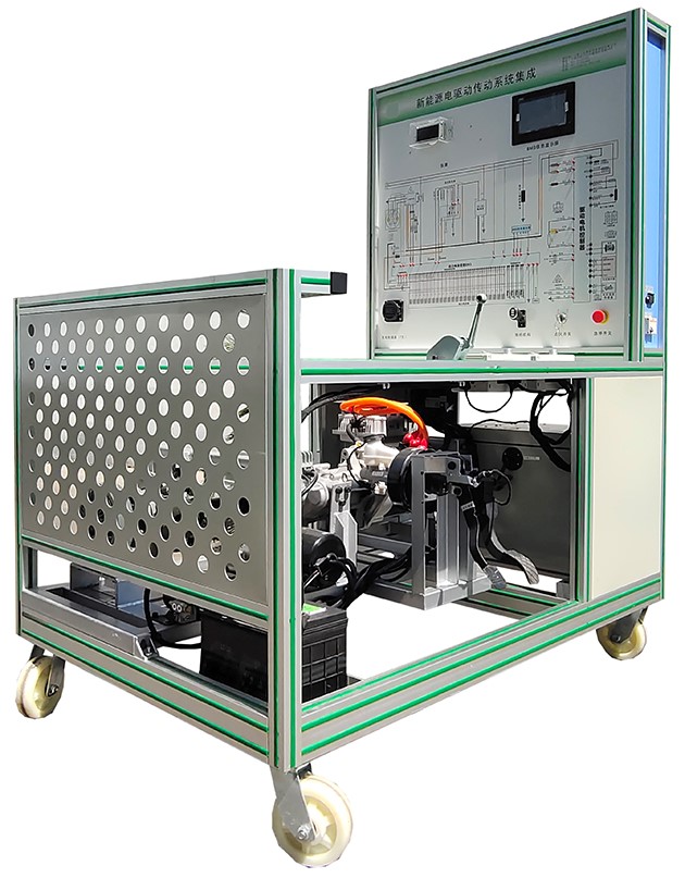 驱动电机、电机控制器、DC/DC转换器、主保险盒、车载充电器、组合仪表、电池组、挂档杆、故障设置和排除系统、原车电路原理图及检测端子、大容量蓄电池、加速机构、控制台、可移动台架、台架电源总开关、诊断座、散热系统、数字显示表、带锁止的万向脚轮等。
