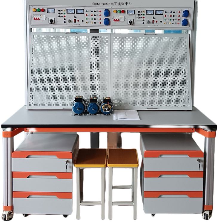 电工实训平台由钢板作制作的多功能安装板(网孔板)实训台和电源装置等组成。实训时选择的各种元件、器件和部件,可方便地安装在网孔板上,方便灵活。