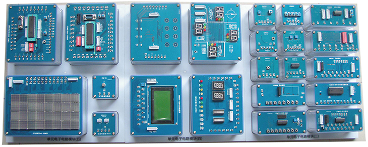 该模块将实际应用中单元电路模块化。学生通过模块间的搭接,很方便就能搭建成各种实际产品,模块搭成产品的范围涉及家电,工业,无线等方面内容。单元模块电路包括传感器,信号处理,显示,执行本体,接口电路,微处理器、通信等模块。模块都采用透明盒装配,模块间采用排插和接线柱连接,使实训模块能够灵活按教学要求或竞赛要求搭建成各种实际产品。线路板统一采用蓝色作为底色,清爽直观。连接采用铜制插孔和8脚白色排针,连接方便灵活。大部分电子元器件都为贴片封装,布局经凑。