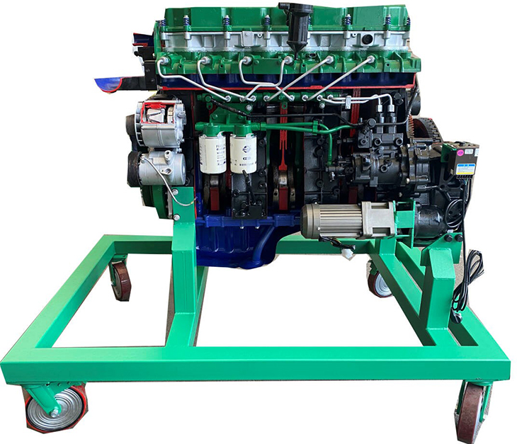 中型高机动车辆发动机解剖实训台、该设备采用翻新CTM134中型高机动车辆CA6DL2-35E3R发动机总成进行剖面处理,各部件齐全,剖面位置合理,能全面展示发动机内外部结构和部件的运动情况,适用于发动机原理和机械机构的教学。