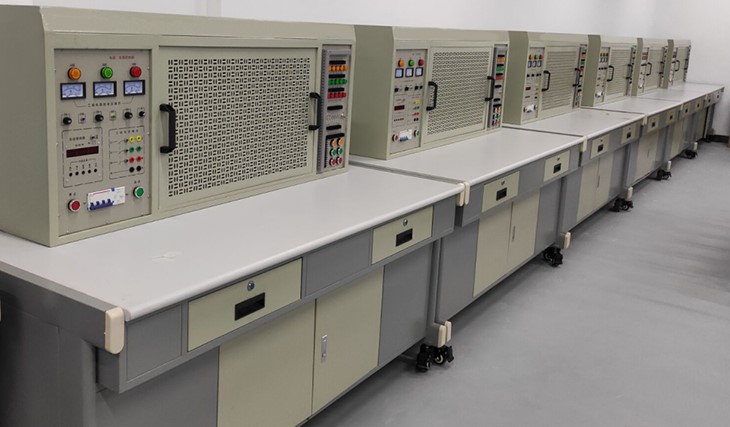 2、操作台只需三相四线的交流电源即可投入使用,占地面积小,实训器材集中在储存柜内,易管理、规划化程度高。