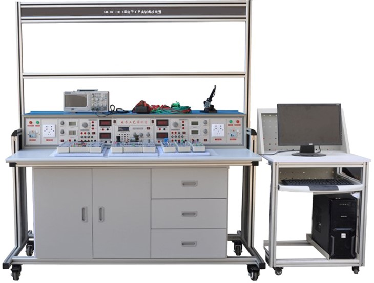 电子工艺实训考核装置主要功能:面向机电一体化技术专业的《电子工艺技术》、《电子技术》等课程的实验与实训教学,同时能满足学生电子制作、创新实践活动等综合性、创新性实践要求。电子工艺实训考核装置根据实际生产和相关岗位职业技能要求研制而成,可完成模拟电子技术实训、数字电子技术实训、综合应用实训、电子产品工艺焊接组装调试等实训项目。本实验台适用于电气类、电子类、机电类的<模拟电子技术>、<数字电子技术>、<电工基础>等课程和非电类专业的模拟与数字电路模块的教学与实验、实训,电子元件识别与检测、电路板焊接、电子产品装配、电子产品调试、PCB板图的设计等实训项目,包括多个组合模块,能为学生提供了一个综合应用、创新实训的平台。