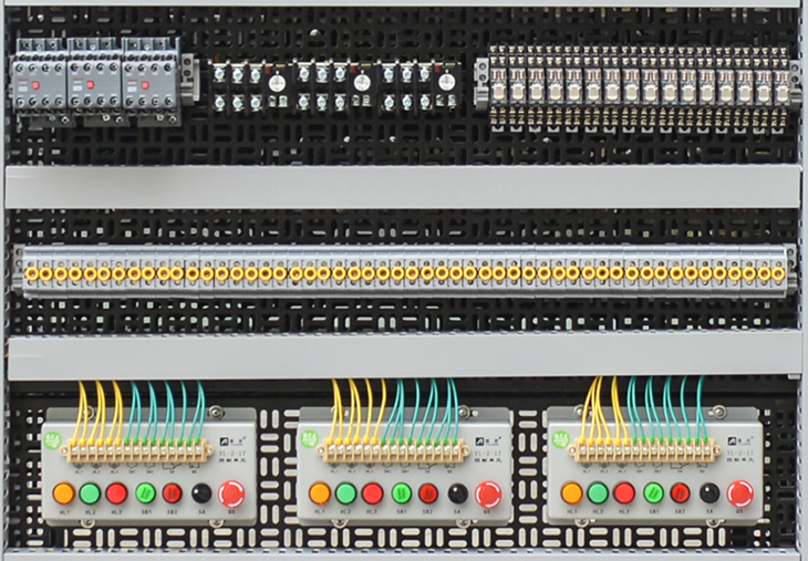 组成:继电器、交流接触器、热继电器、按钮指示灯、导轨、线槽、双层端子;