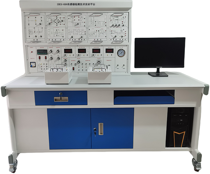 传感器与检测技术实验台、传感器综合实训台、传感器技术实训室设备、主要服务于应用电子技术、现代通信技术专业,可承担《传感器技术》等专业课程的理论与实践教学任务。承担的实训任务有:金属箔应变传感器应用、霍耳位移传感器应用、磁电转速传感器应用、压电传感器传感器应用、光纤位移传感器传感器应用、集成温度传感器传感器应用、湿敏传感器传感器应用、气敏传感器传感器应用等。