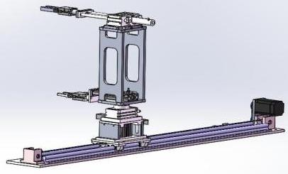 本站的功能是完成向各个工作单元输送工件,系统分为双机械手单元和直线位移位置精确控制单元两部分,系统上电后,先执行回原点操作,当到达原点位置后,若系统启动,供料站物料台检测传感器检测到有工件时,机械手整体先提升到位后手爪伸出到位后手爪夹紧,手爪夹紧到位手爪开始缩会机械手整体下将到位后,伺服电机开始工作按设定好的脉冲量到加工站。加工站到位后机械手整体提升,提升到位后手爪伸出伸出到位后机械手整体下降,下降到位后工件已放入加工站物料台上,然后手爪松开,松开到位后机械手回缩,等加工站加工完成后再将工件送到装配站进行大小料装配,装配完成后机械手抓取物料送到分拣站进行分拣,这样双机械手的一个加工运动过程就完成了。只要料筒不缺料会持续以上过程。当料筒出现缺料后,机器人会搬运过来物料,机械手会运行到取料位置抓取机器人上的小料,然后放入小料筒中,然后返回原点,当机器人再次搬运过来物料,机械手会运行到取料位置抓取机器人上的大料,然后放入大料筒中,这样一个物料的拆分过程就完成了,直到把码垛料台上的物料全部拆分完成后为止。