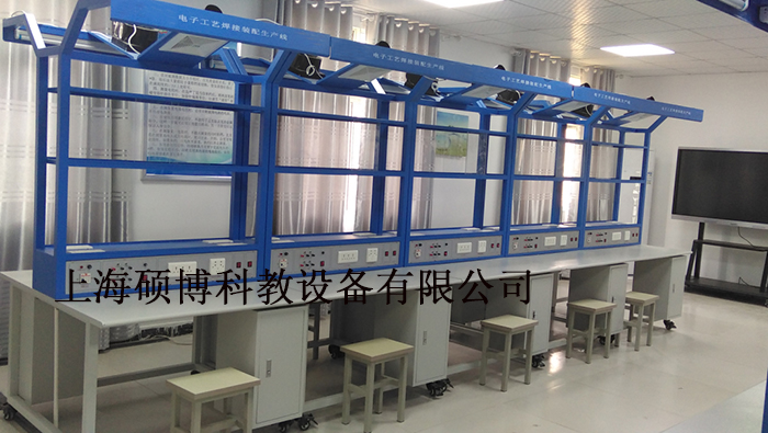 电子焊接装配实训室,电子产品工艺实训台,可完成中小型电子产品的装配、调试和检修等实训,使学生掌握电子产品的整机焊接、装配与调试技能,同时可满足进行电子制作、电子设计大赛、课程设计、毕业设计等综合性、设计性、创新性的实训要求。电子装配生产流水线装置是高度仿真工厂的电子焊接装配生产线,满足学员电子制作、电子设计大赛、课程设计、毕业设计、创新实践活动等综合性、设计性、创新性的实训要求。可培养学生的实践能力和创新能力。适合技术学校、职业培训学校、职教中心、鉴定站、检测所等电子类专业《电子工艺》相关课程的教学实训和鉴定考核。