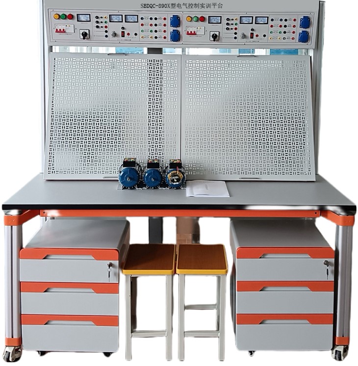 四、 电气控制实训设备结构功能:本实训台由实训屏(内置电源)、实训桌、实训储物柜三大部分组成。