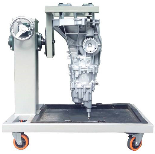 采用减速翻转机构,可使变速器旋转任意角度,并能任意位置锁止,便于学生从不同的角度进行拆卸和装配。