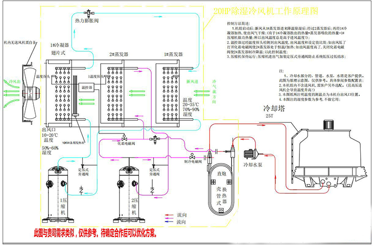 5、调温除湿机是提供一种可以在不同室内、外温度下对室内进行供热、制冷和除湿以满足室内温湿度要求的管道式调温调湿方法及其设备,