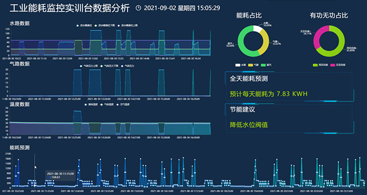 能耗监测实训系统、工业能耗监控实训台,是针对工业互(物)联网专业、电气自动化专业、测控技术及仪器专业而设计的过程控制系统,涵盖工业自动化仪表、可编程控制器、工业现场总线、组态开发、低代码开发等技术,帮助学生掌握工业数据采集、过程控制、数据入网、数据分析的方法。