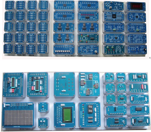 5、本装置具有各类模块200多个,具有广阔的延伸空间,本装置可完成<模拟电子技术><数字电子技术><电力电子技术><单片机技术应用>等多门课的实验、实训项目,这样可充分发挥本实训台的利用率,并可节省实验实训场地,性价比大大提高。