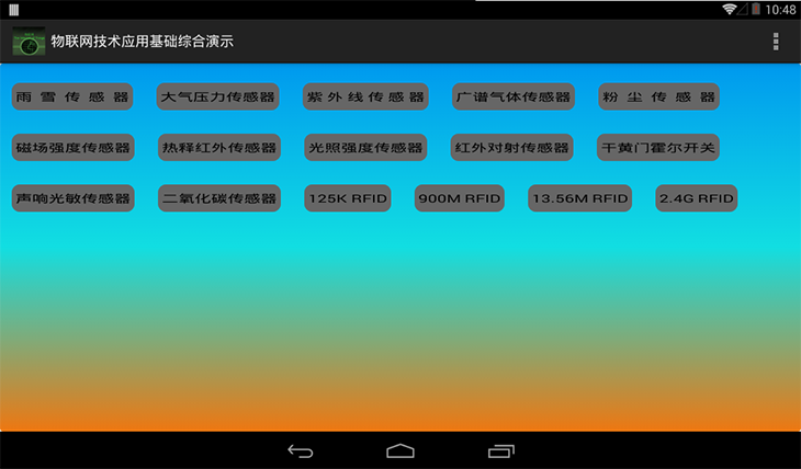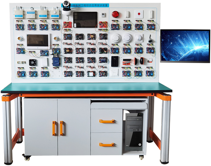 物联网综合应用实训系统、物联网综合实训室由物联网工程应用创新系统、物联网关键技术实验台、物联网多网技术综合教学开发平台组成。通过对感知识别、通讯传输、组网技术以及数据分析的物联网递进架构体系进行创新研发和生产设计。结合无线射频识别技术、传感网技术、短距离无线通讯技术、移动支付技术、家用智能化、城市管理等领域,形成了一套完整的融实训创新为一体的教学开发系统。