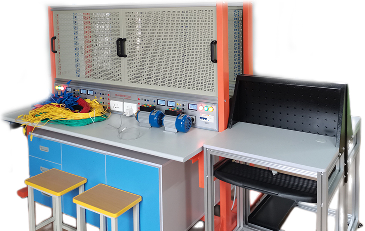 电气安装与调试综合实训平台由实训屏(内置电源)、实训桌、实训储物柜三大部分组成。