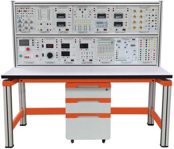 实验平台由实验桌、实验台架、存储柜、实验挂箱组件、配件等组成。具体参数如下: