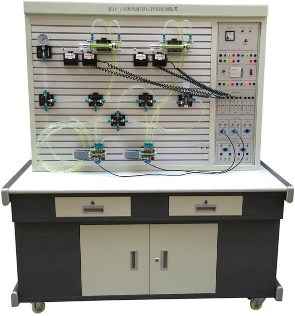 透明液压液压实验台、透明液压PLC控制实训装置、液压实验实训台内容涵盖了液压技术、传统继电器控制技术、时间继电器技术、PLC 自控技术、液压传动应用技术等多项技术,可使学生用最短时间,以最快的速度,有兴趣地学习与掌握液压与气动元器件,并学会搭建典型液压与气动控制回路。