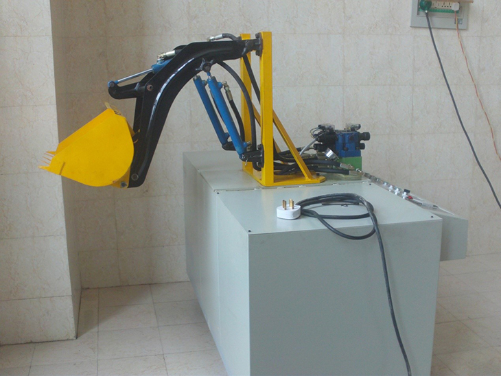3、装载机械按实物比例缩小的全金属结构,实验时启动液压系统根据实验要求模以操作机械进行工作。